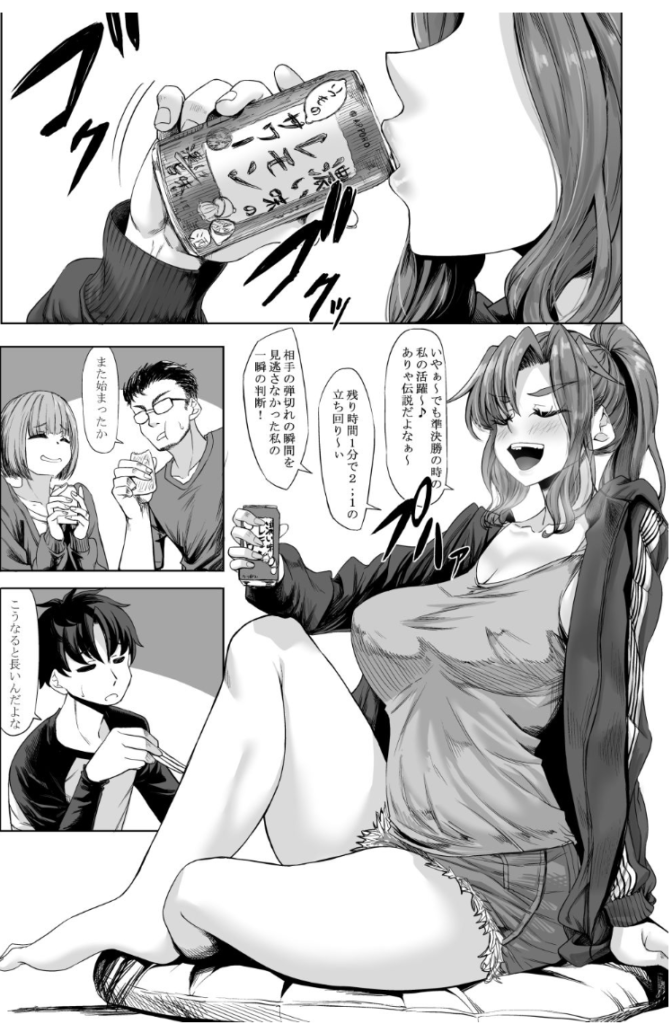 酔っ払ったエリが途中で目を覚まし、まだ酔い潰れて寝ているスイカに対して…