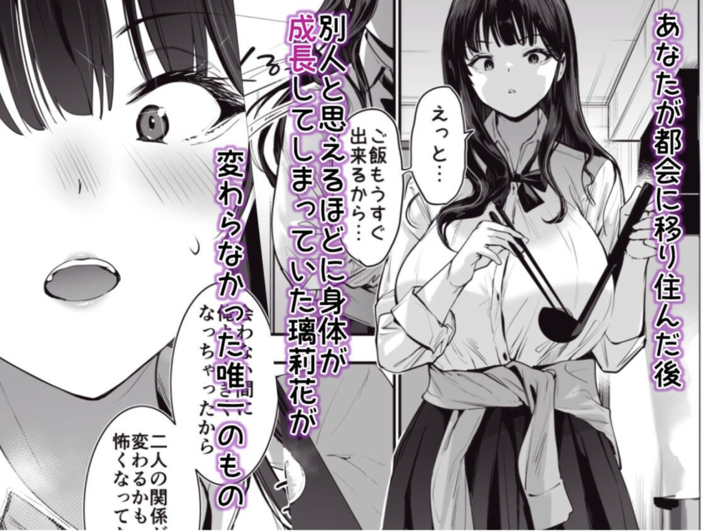 そんなある日、璃莉花がオープンキャンパスに参加する間のホテル代わりとしてあなたの部屋に泊まることに。久しぶりに会った璃莉花は別人のように全てが大きく変わっていた。